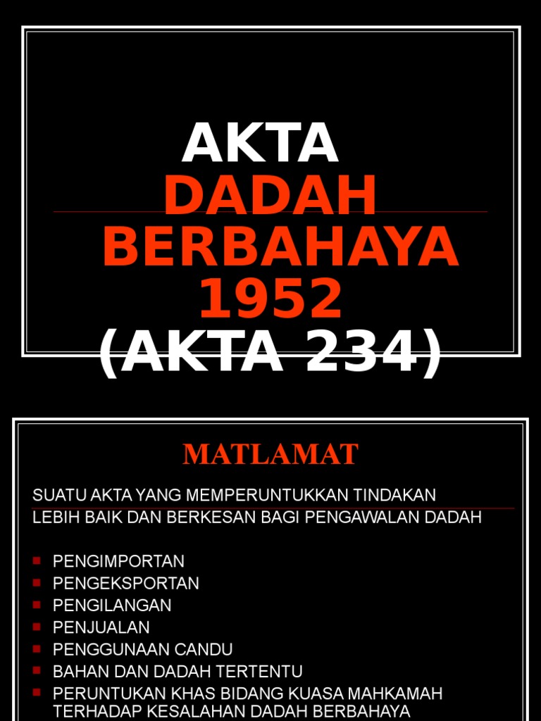 Holdings Akta Dadah Berbahaya 1952 Akta 234 Peraturan Peraturan Malaysia melainkan. Akta Penagih Dadah Rawatan dan Pemulihan 1983. Akta Dadah Berbahaya 1952.