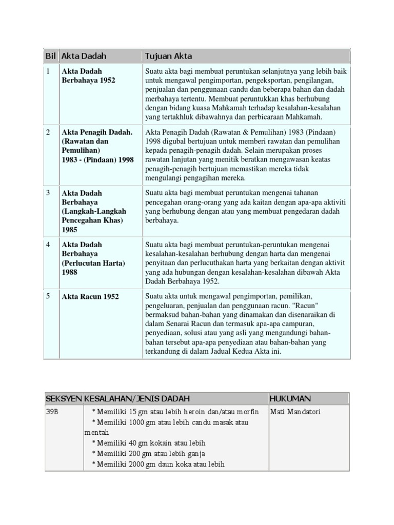 Akta penyalhgunaan dadah. AKTA PENYALAHGUNAAN DADAH PENGGAL 27 PERATURAN-PERATURAN PENYALAHGUNAAN DADAH PINDAAN 1998 Pada menjalankan kuasa yang diberikan oleh ceraian 1 bab 34 dari Akta Penyalahgunaan Dadah maka Menteri dengan titah perkenan Kebawah Duli Yang Maha Mulia Paduka Seri Baginda Sultan dan Yang. Kerajaan akan menggubal akta baharu untuk meningkatkan keberkesanan dalam aspek pemberian khidmat rawatan dan pemulihan dadahMenteri Dalam Neg. Akta Dadah Berbahaya 1952 Pindaan 1998 Sumber.