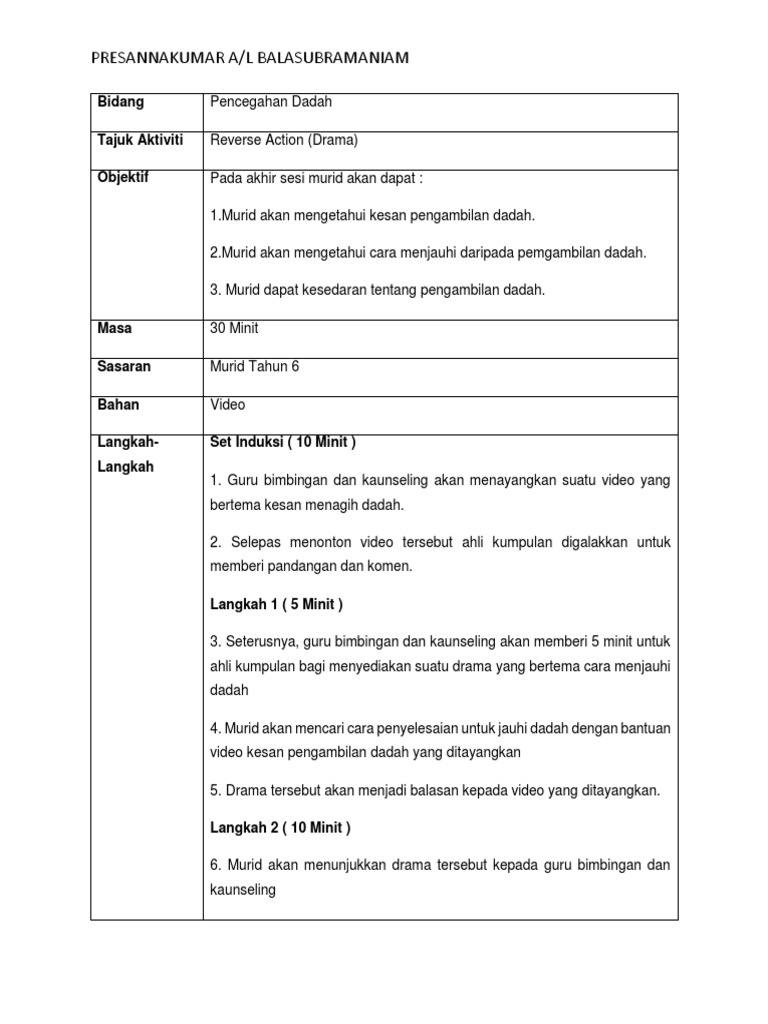 Sebagai contoh mengadakan aktiviti-aktiviti seperti ceramah seminar pameran dan sebagainya. Menyenaraikan 3 daripada 6 kesan negatif penyalahgunaan bahan bagi rokok alkohol dan dadah dengan betul Afektif. Mengingatkan semua warga sekolah tentang Visi dan Misi PPDa.