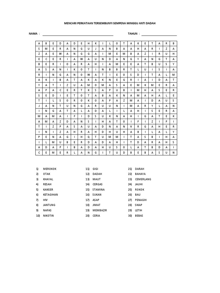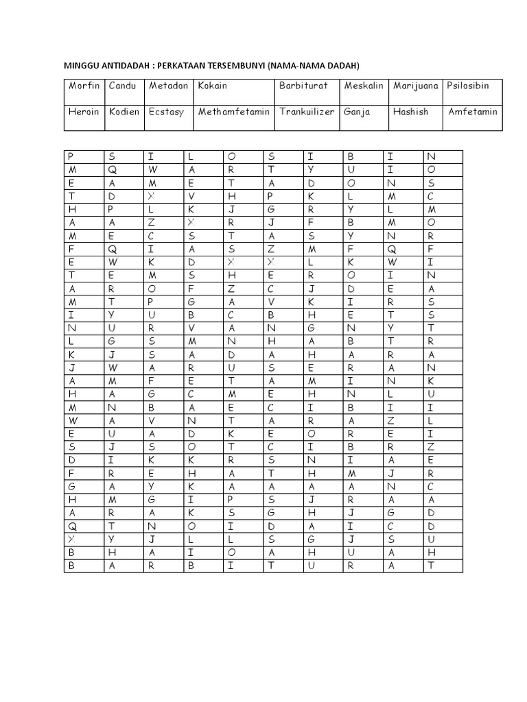 Minggu Antidadah Cari Perkataan Tersembunyi Pdf