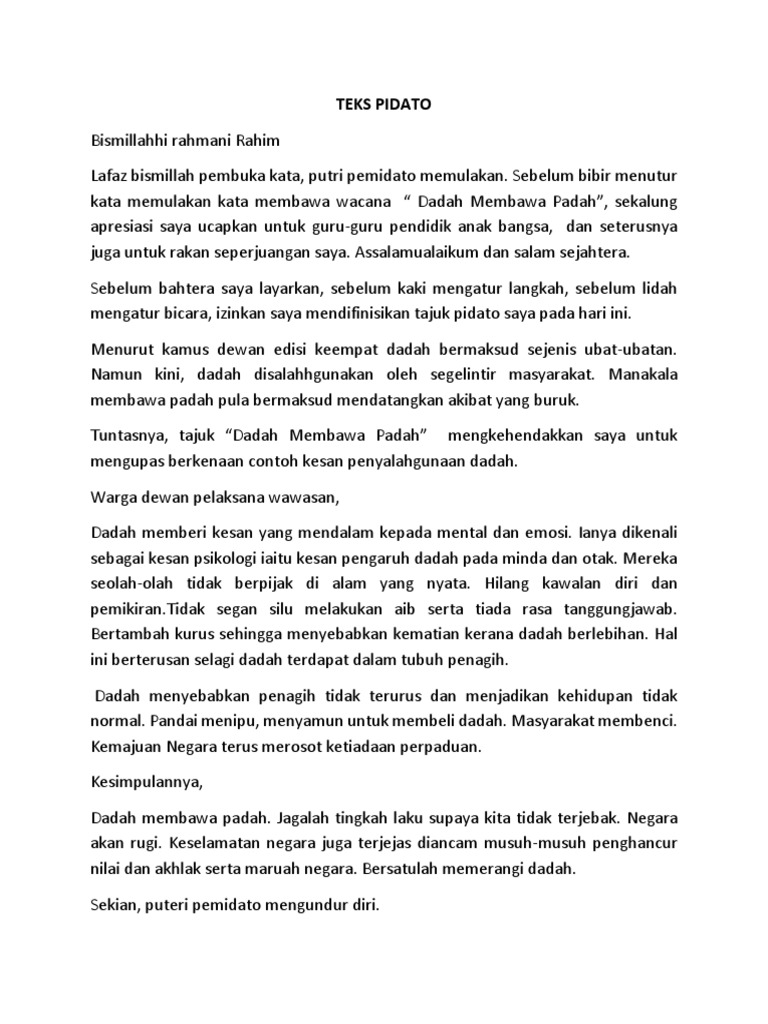 Teks Pidato Penyalahgunaan Dadah Pdf