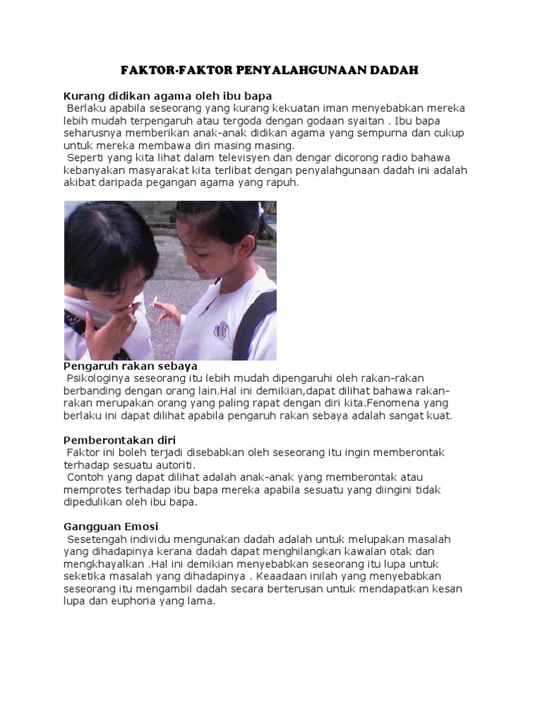 Kesan penyalahgunaannya lebih teruk berbanding dadah jenis syabu dan ganja. Karangan Kesan Penyalahgunaan Dadah - PDF Penyalahgunaan Bahan Di Kalangan Remaja. Makanan tinggi protein amat diperlukan untuk tumbesaran manusia.