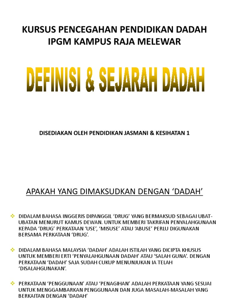 Dadah yang berfungsi untuk menekan sistem saraf pusat otak dan. Menggalakkan pelajar mengambil bahagian dalam permainan atau sukan. Mat Unit Pendidikan Pencegahan Dadah dan Disiplin Petaling Perdana.